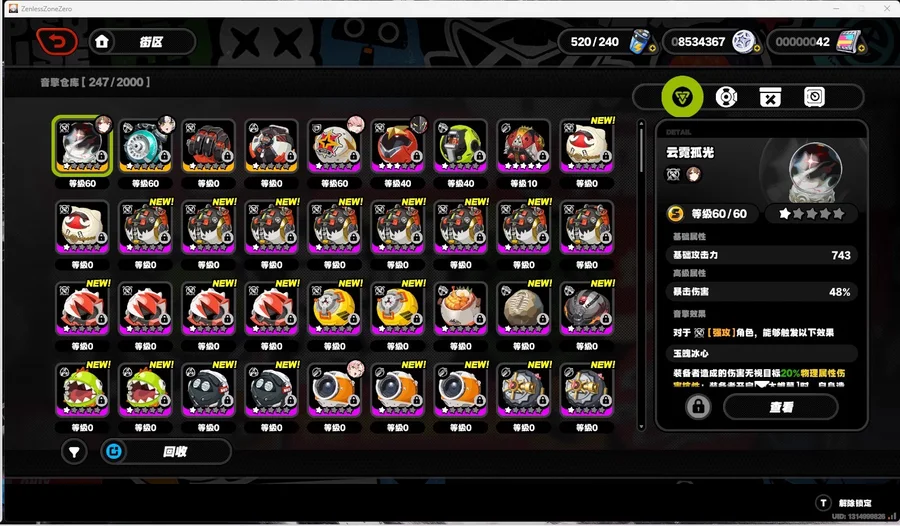 絕區零國際服亞服,53級女主,生日未設