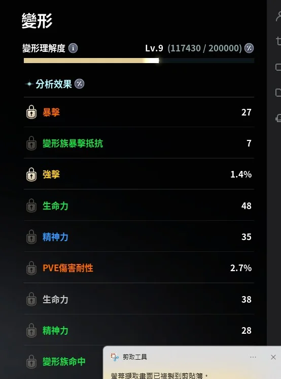 4.高寵物等級: 知性10 野性10 自然9 變形9 特殊9,細節還能摳