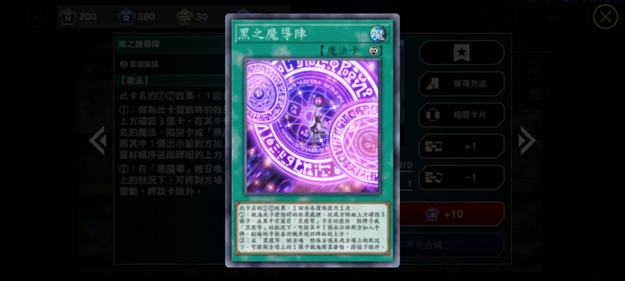 注目卡片(依序為怪獸卡、魔法卡、陷阱卡):