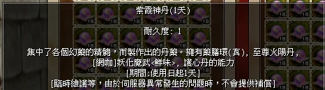 【無雙出品,絕非凡品】紫霞神丹(內涵效果)至尊火陽+藥膳環(真)+妖化魔武+護心丹100%一天若可以練5% 吃一顆下去等於一天可以變練10%紫霞和天地的差異在於紫霞沒有藍/綠草 但有100%護心丹(24H)天地有藍/綠草 但沒有100%護心丹(24H)