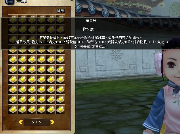 【無雙出品,絕非凡品】黃金丹效果(一顆下去內含效果)生命+500內功+200經驗值+100%防禦力+100武器攻擊力+8%綜合防具+10%所有氣功+3光所有氣功+3就提升不知道多少了打架必備