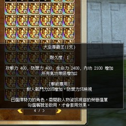 【無雙出品,絕非凡品】內涵效果攻擊力+400防禦力+400生命力+2400內功+2100所有氣功+2對人戰鬥力+20% 防禦力無視+5%