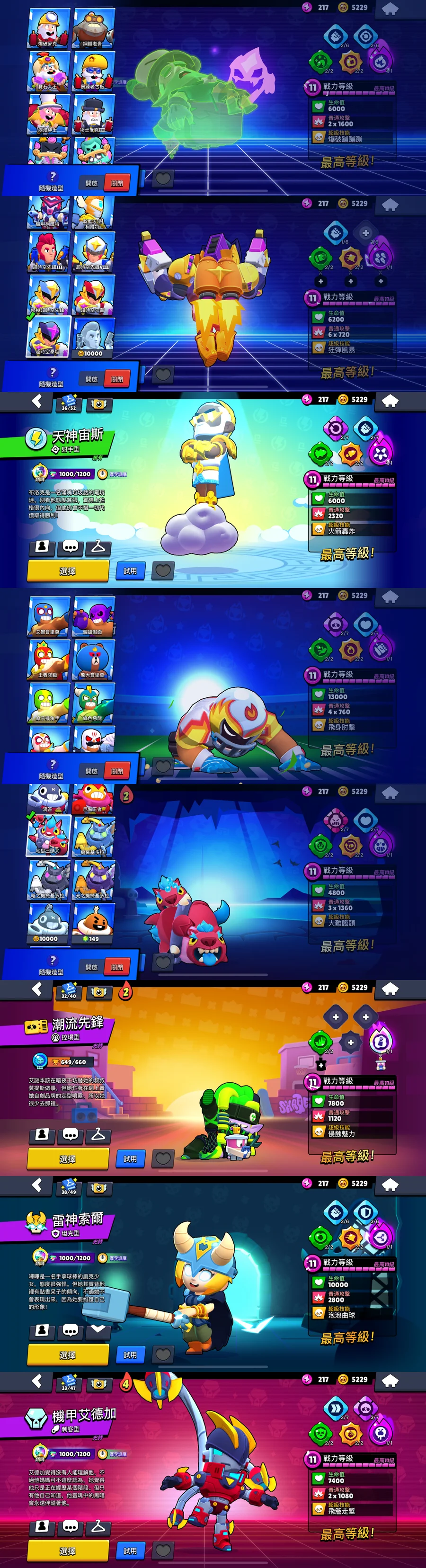 打碟高手、至高者、原型機甲鴨、恐懼騎士、機甲里昂、機甲柯爾特、機甲莫提斯、紙片蘑菇、鳳凰、鬼怪武士、先祖騎士、魔女雪莉、魯蛇、造型太多剩下看圖