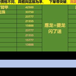 表格右邊價格均為直播製作價格 閃送 失敗算我的
