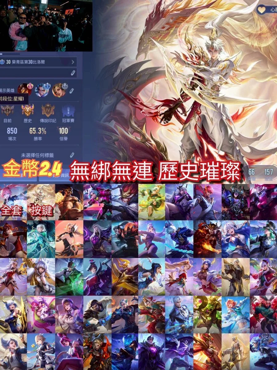 【Garena帳無綁無連、璀璨傳說、V6、66英、157造】無無 歷史璀璨 蜜莉姆 新年 極光 白虎 聖誕 深淵 靈冥 5傳說
