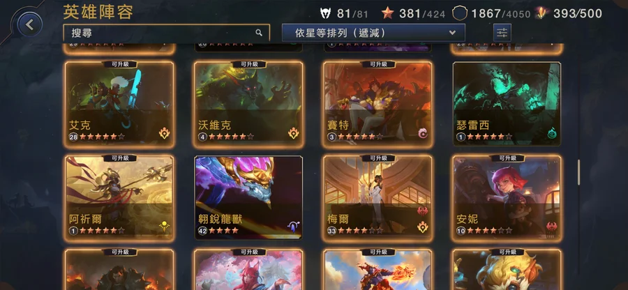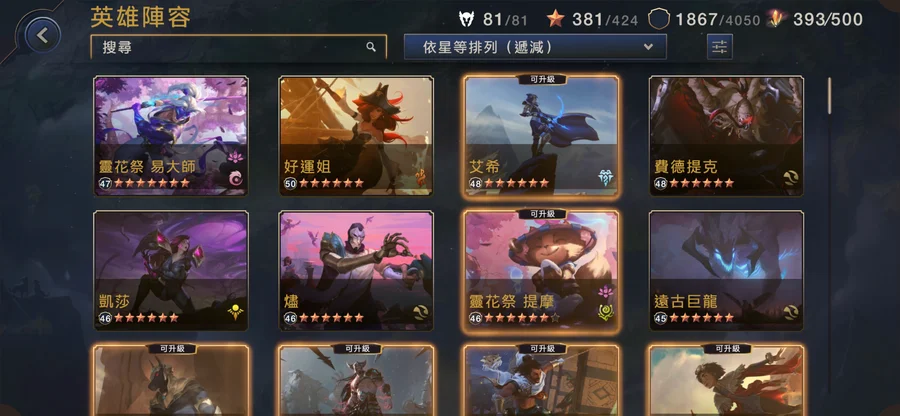 版本強勢的都6星了 比較弱的要練也能很快練起來 素材眾多 關卡進度全通 淡遊了希望有人接手
