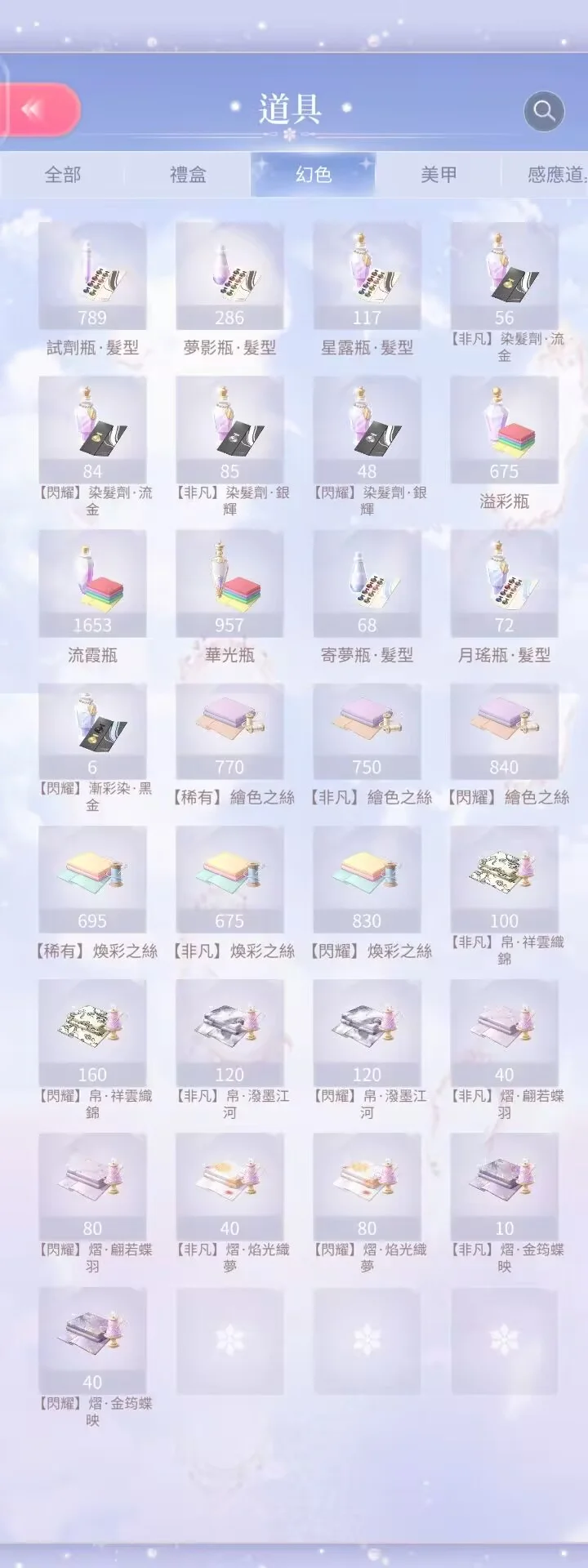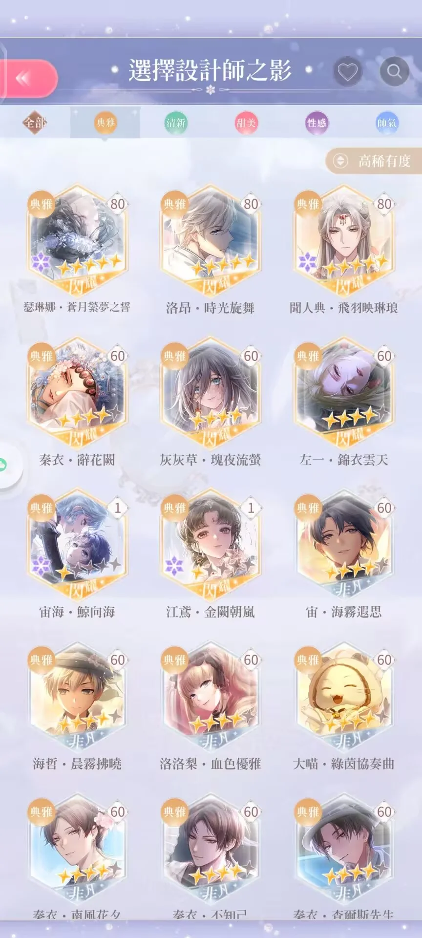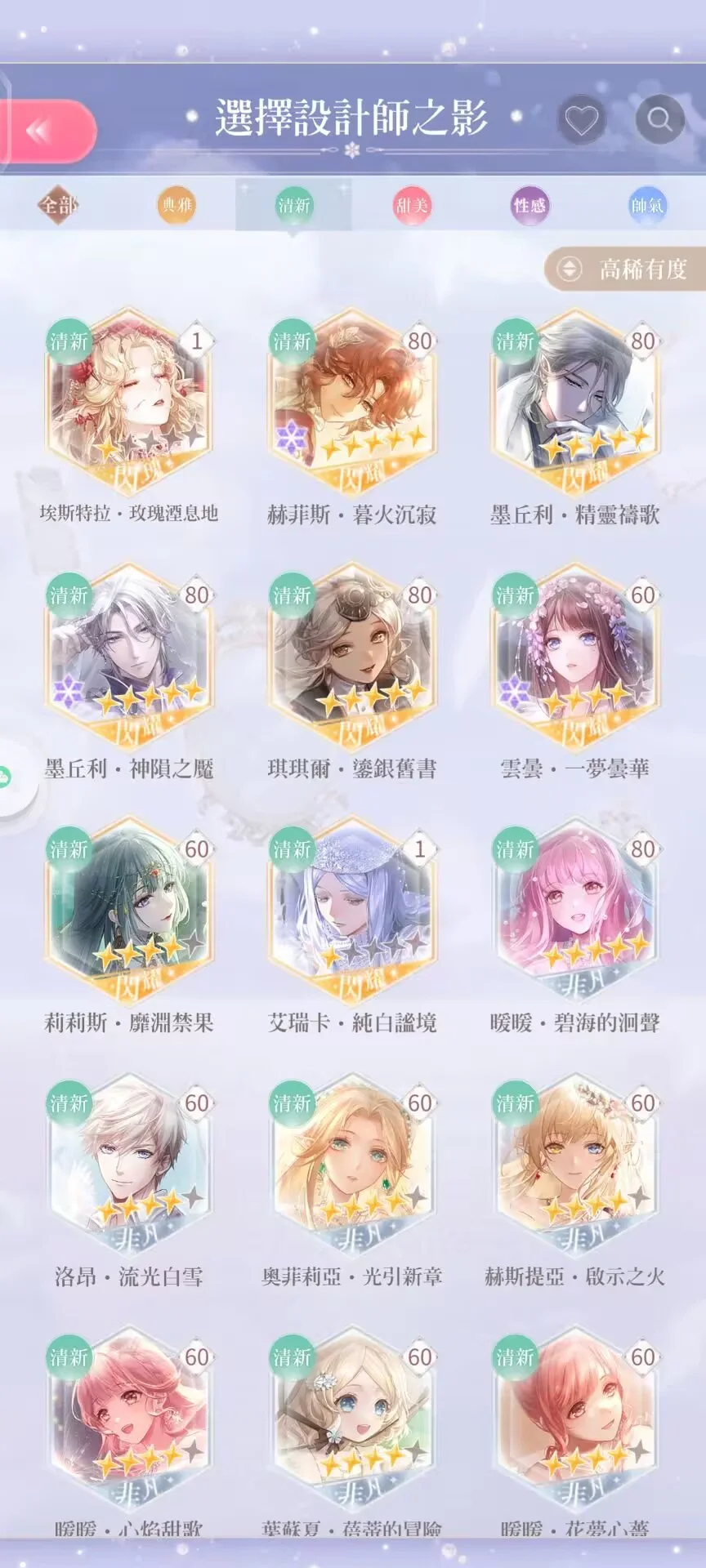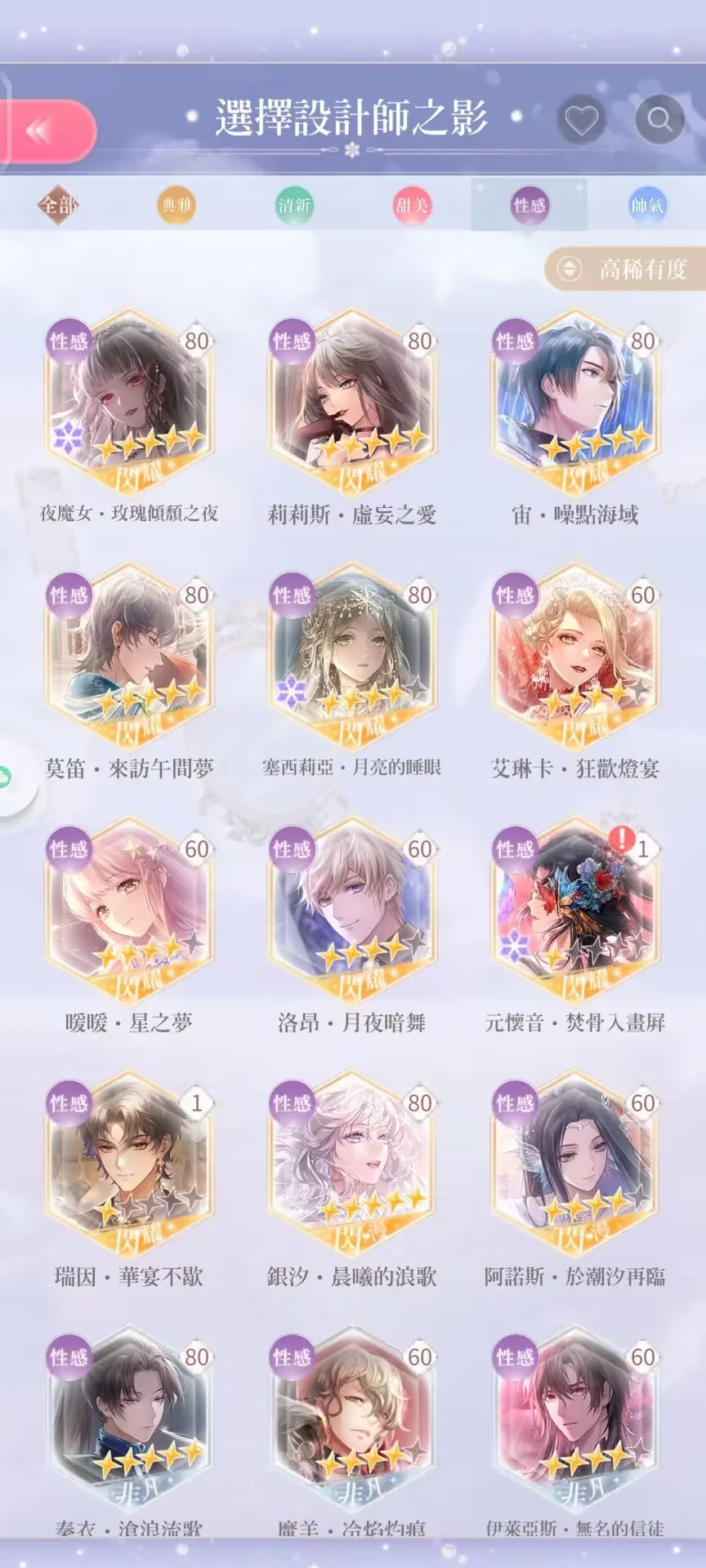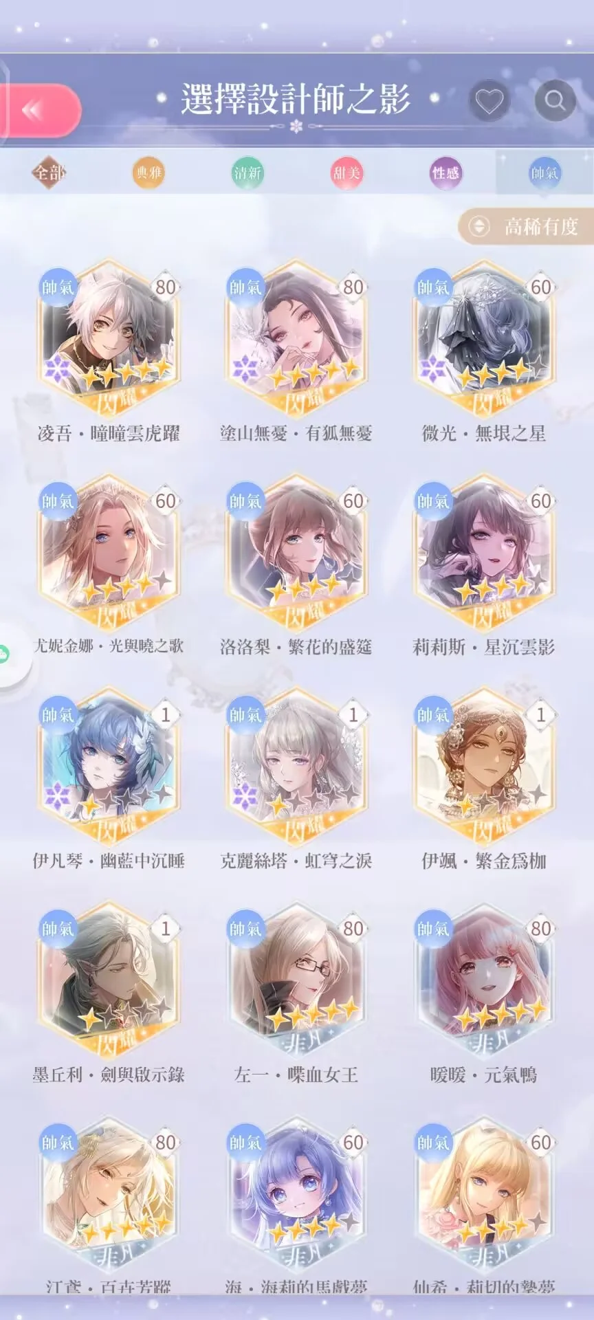 閃套:總共49套(含競技場、活動及常駐套,不含復甦)