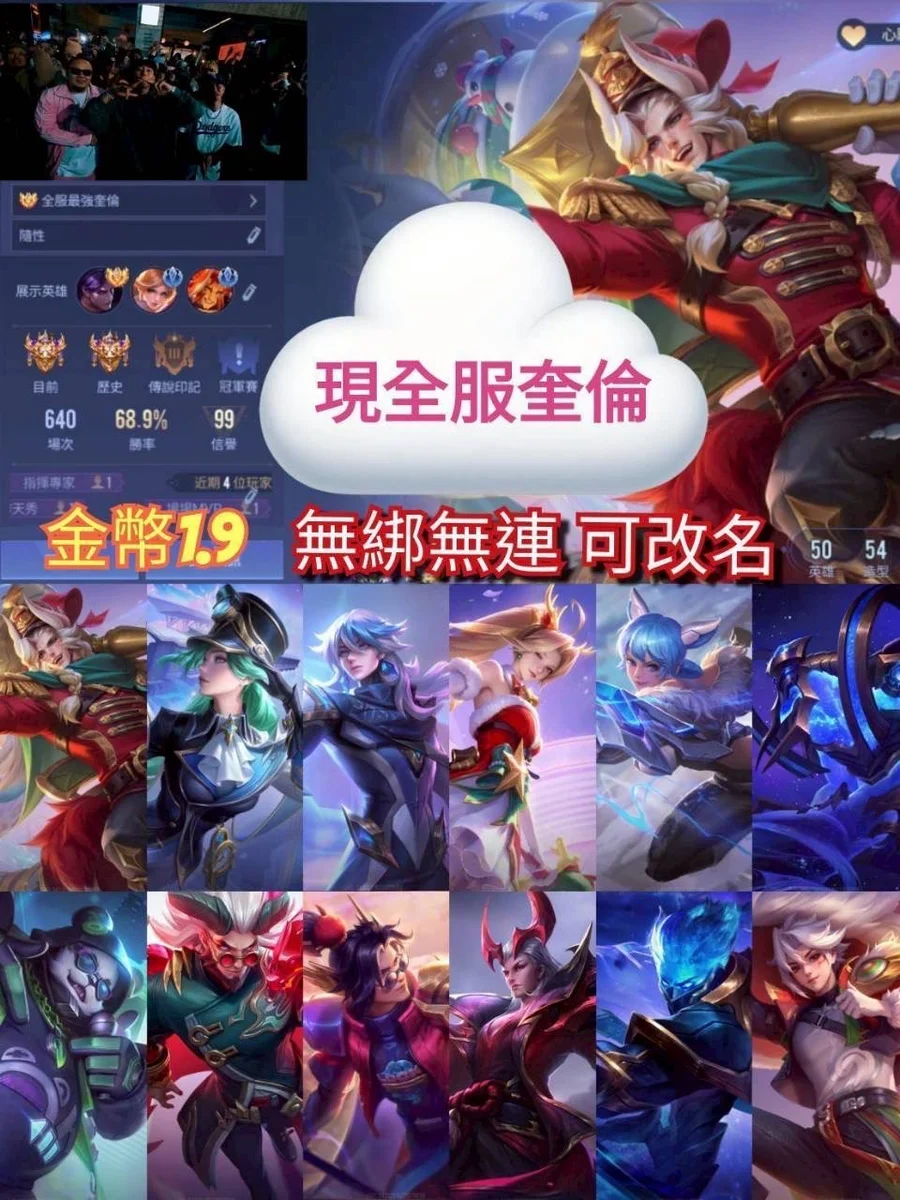 【Garena帳無綁無連、璀璨傳說、V4、50英、54造】無綁無連 上級璀璨 全服奎倫 雙藍標 聖誕 9週年 高勝