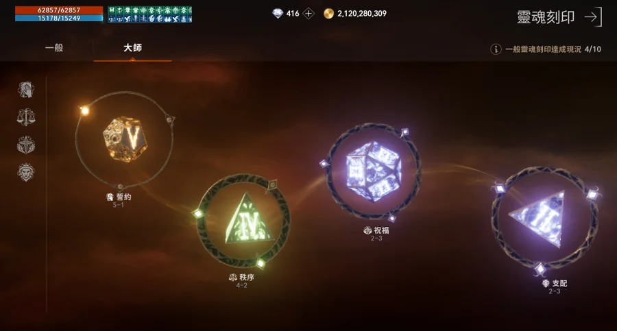 ★大師靈魂刻印:誓約5-1、秩序4-2、祝福2-3、支配2-3