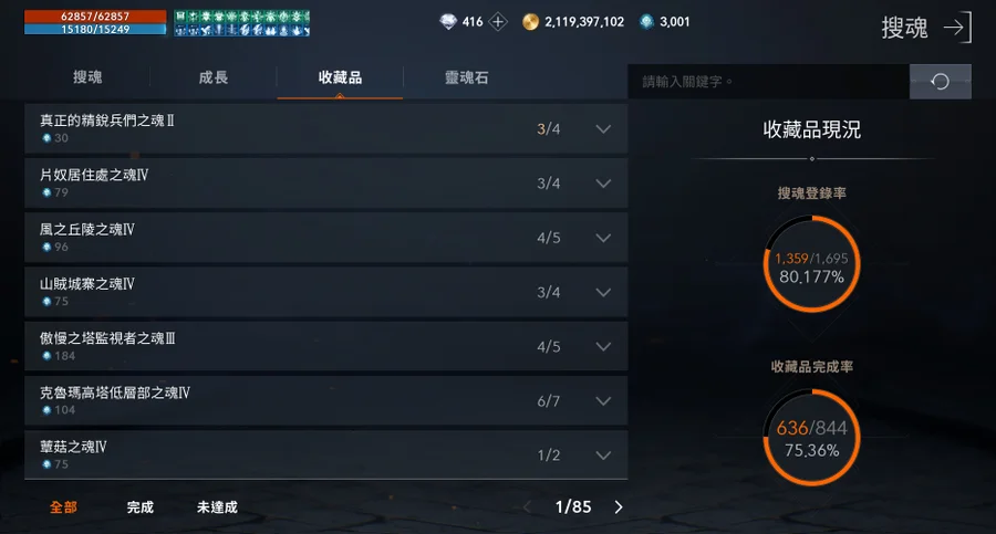 ★搜魂登錄80.177%,搜魂收藏完成75.36%
