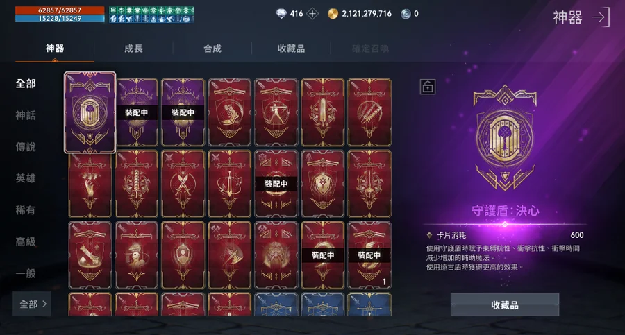 ★神器:本職2紫、1大劍三階紫神器等轉職,本職6紅(重複2)