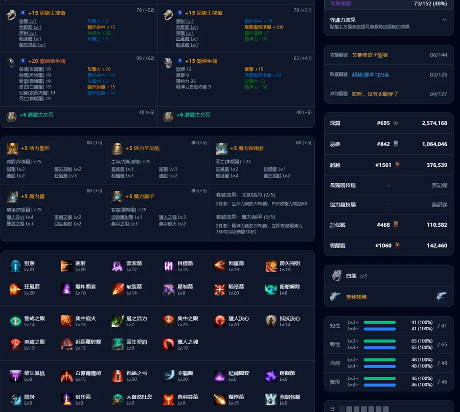 5個主要技能全部20等,卡牌畢業很完美,3個烙印技能20等,一個15等