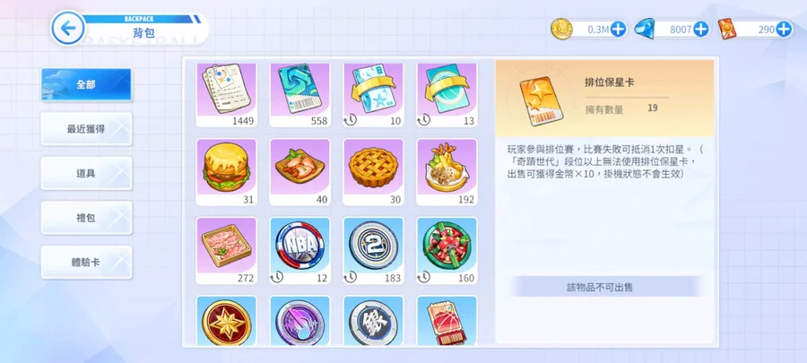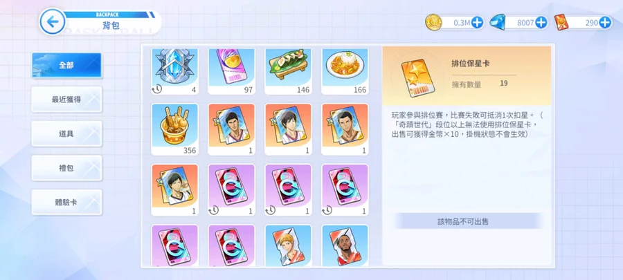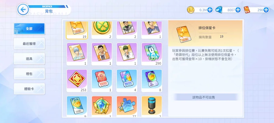 【999等】多資源,多角色潛能,四顆金籃球,永久卡,剩下自看