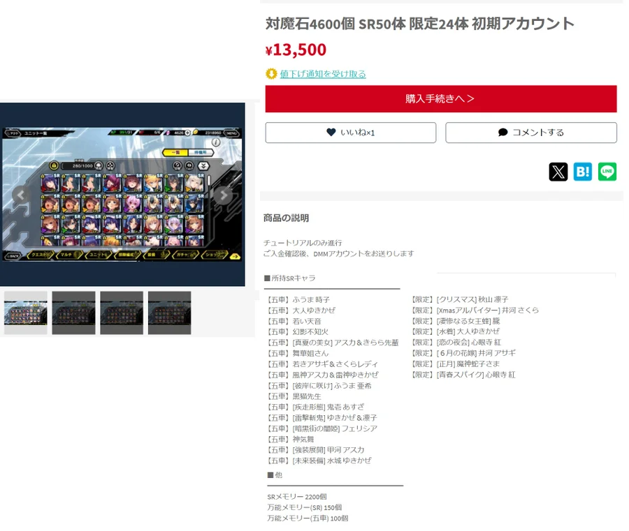 也販售其他DMM遊戲的獨家初始帳號,可點擊下面紅色標題,直接跳轉賣場。