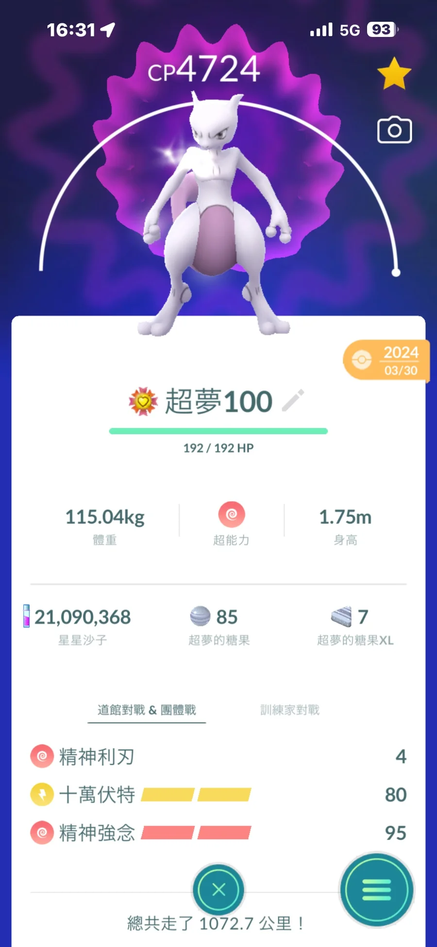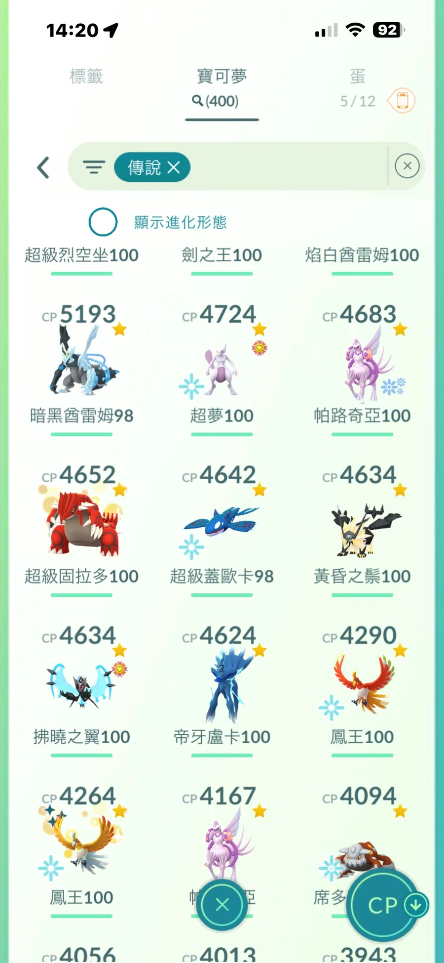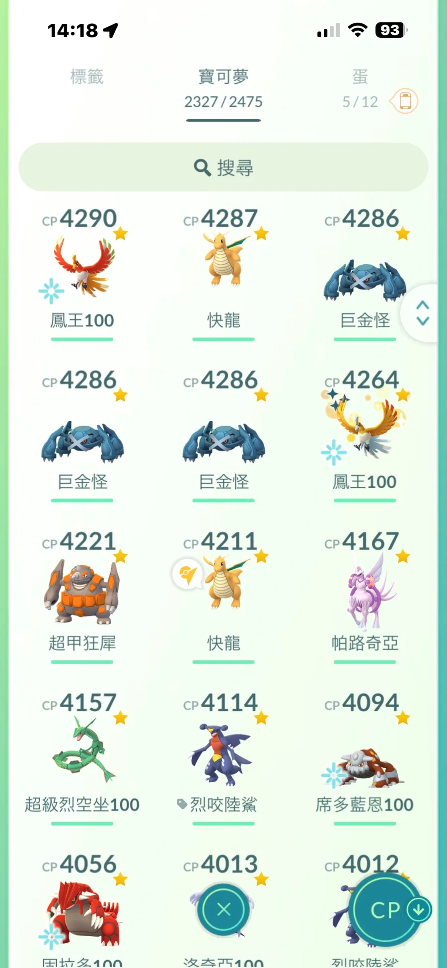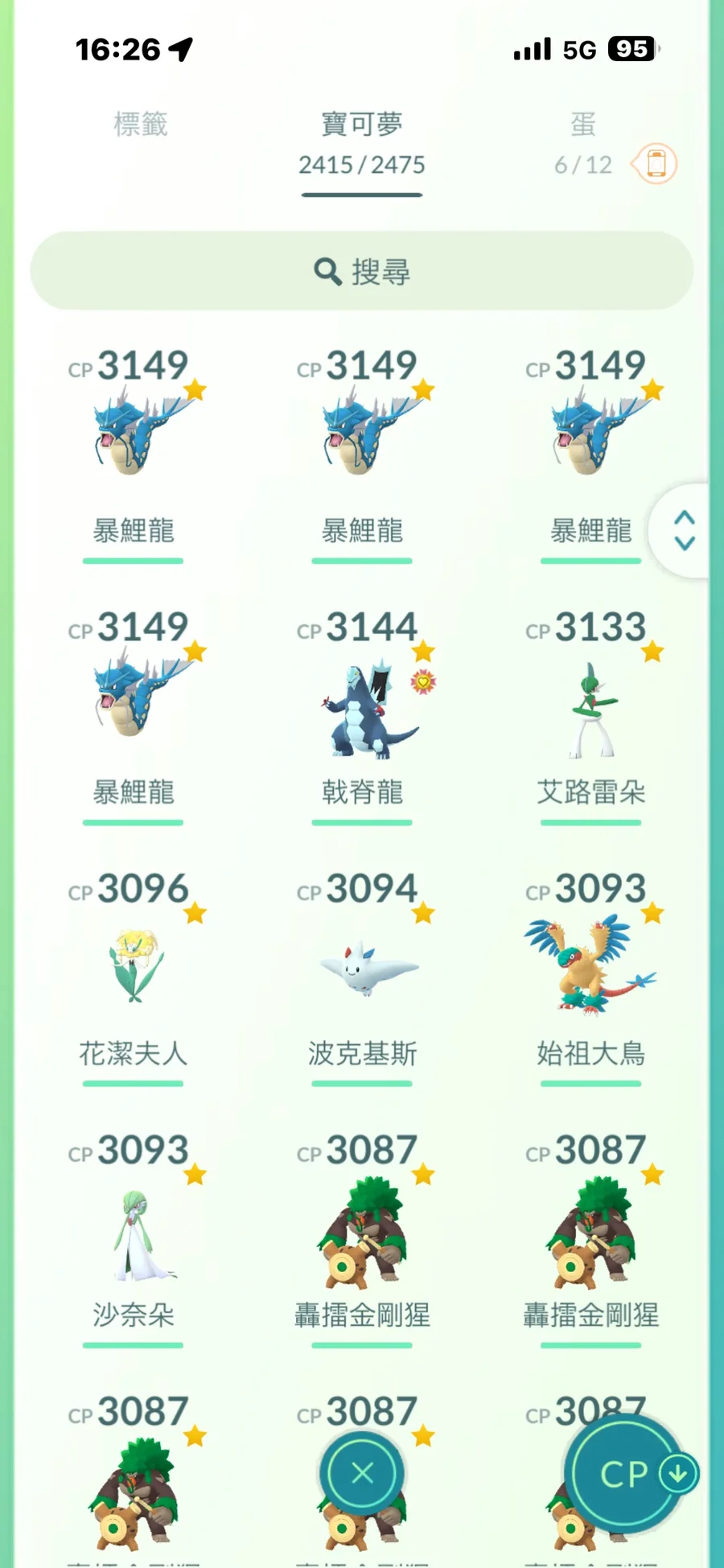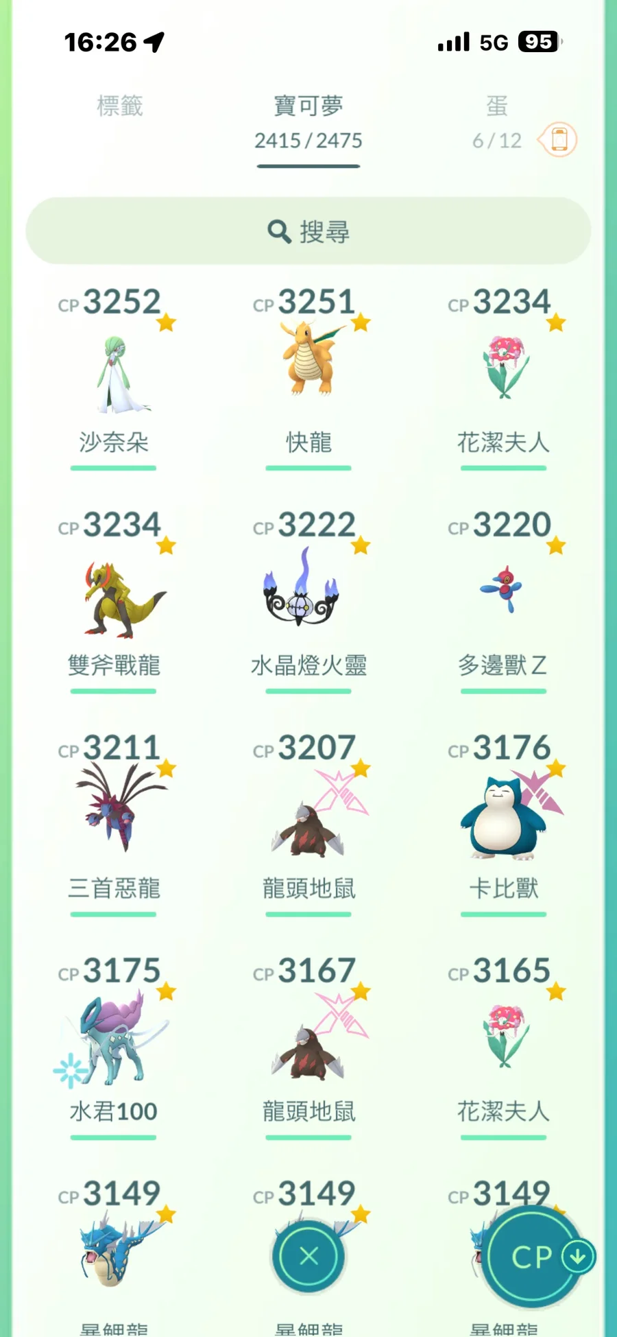 完美共1079隻/傳說完美有29隻.其他9X居多