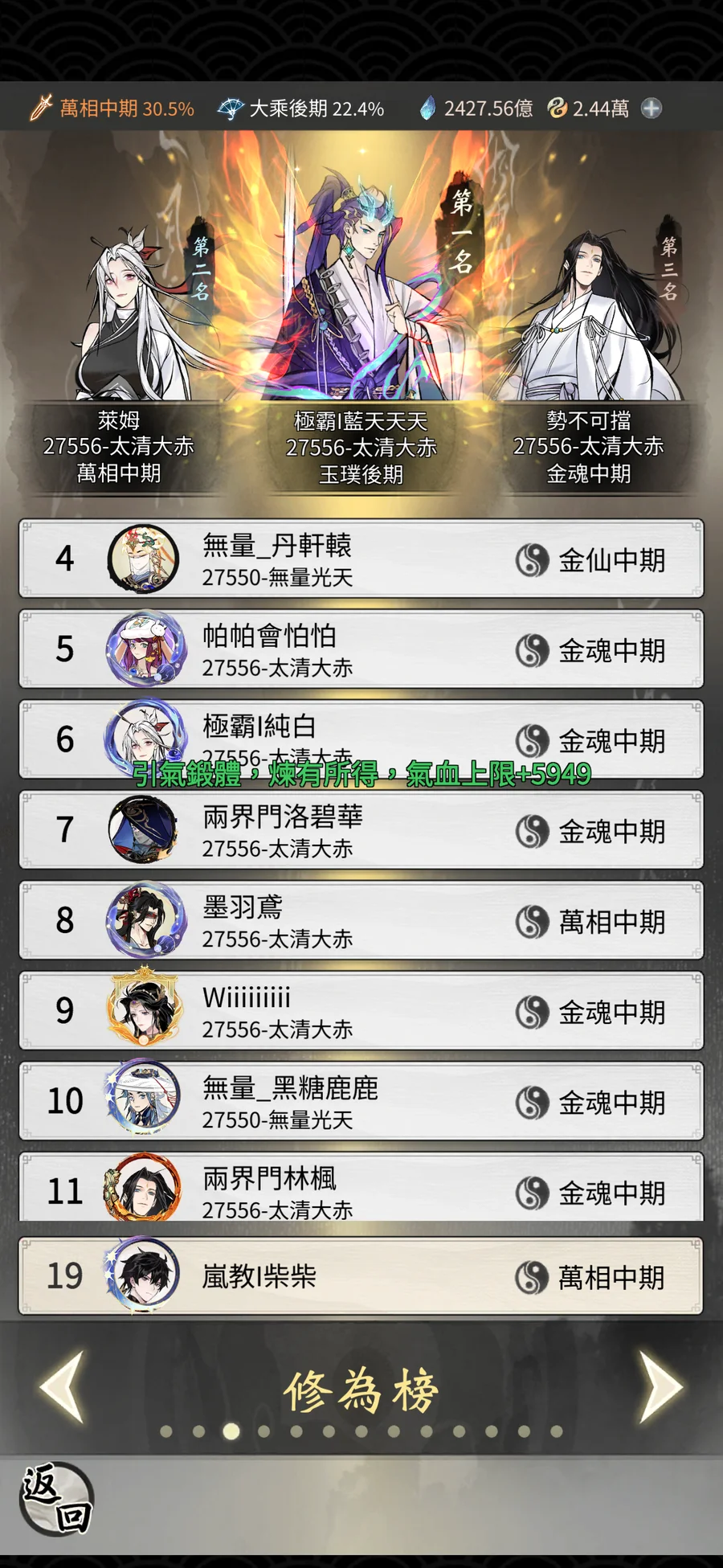 [留學]此號目前跟著宗門先鋒一起往前,3月可跳回鬼頭,戰力修為排名只上不下