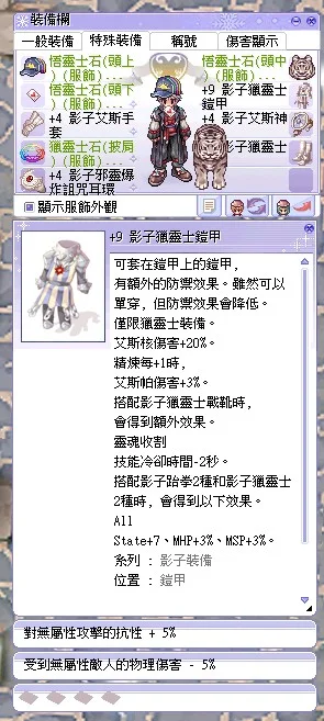 職套套組: +9 影子獵靈士鎧甲、影子獵靈士戰靴(職業增傷與穩定性提升)