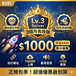 經營大型伺服器、遊戲公會首選!單月買要 $500,現在直接包季 3個月只要 $1000(現省 $500!)