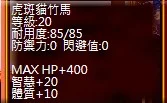 虎斑貓竹馬 乾淨 +20智 +10體