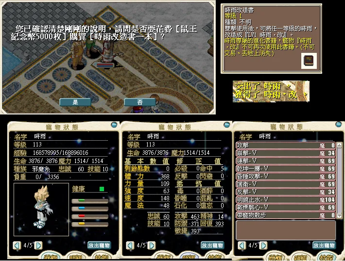 可以到紅利兌換所用5000鼠王幣換取時雨改造書