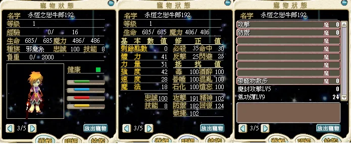 1等永恆之戀牛郎:氣功彈9+魔法封印5
