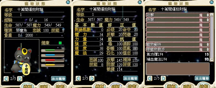 1等十萬兩黑貓:氣功彈4+單體補血4(愛貓人士不可錯過)