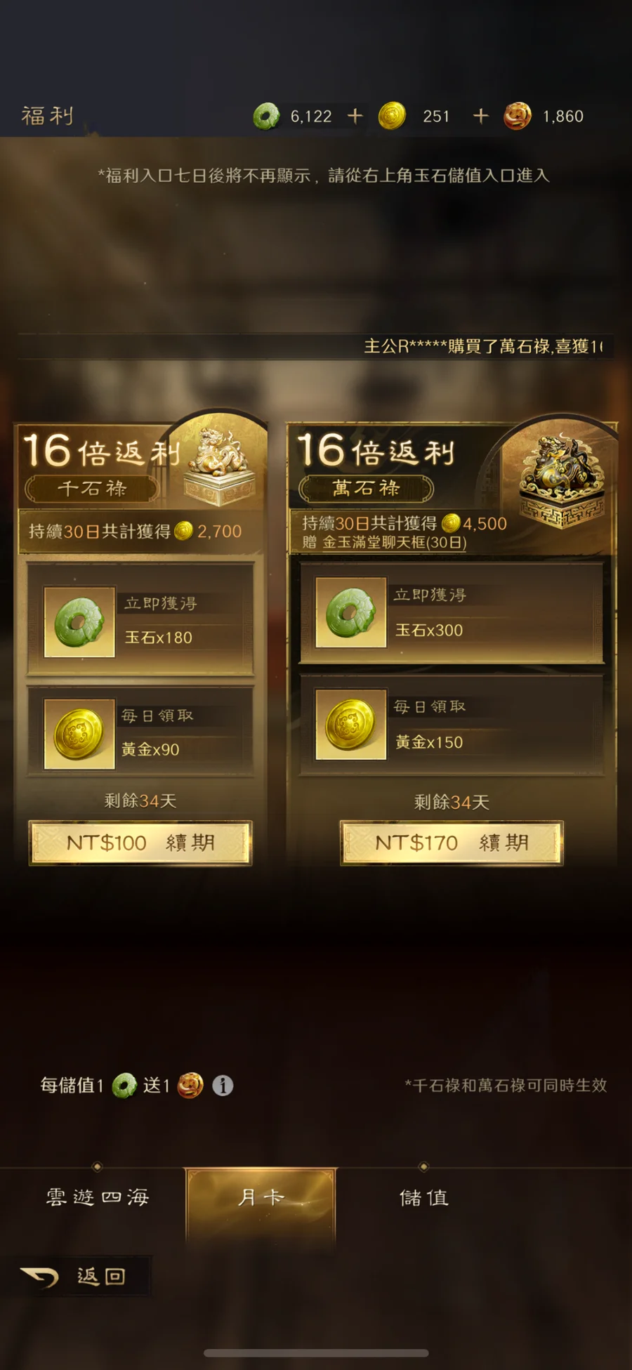 雲遊幾乎未動 買到後課金提升更快