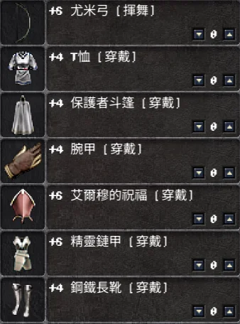 內容物包含+6尤米弓+6艾盔+6精靈鏈甲+4鋼靴+4腕甲+4內衣+4保斗