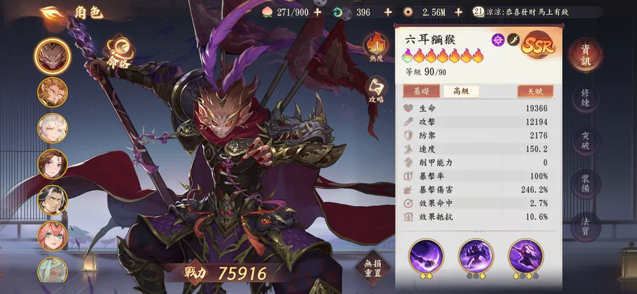 有其他問題可以私訊喔 可以體驗雙猴追擊的強度 配對舒服 資源眾多基本上所有SSR都有 只有鐵扇跟閻羅沒有其他全包