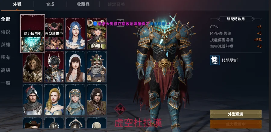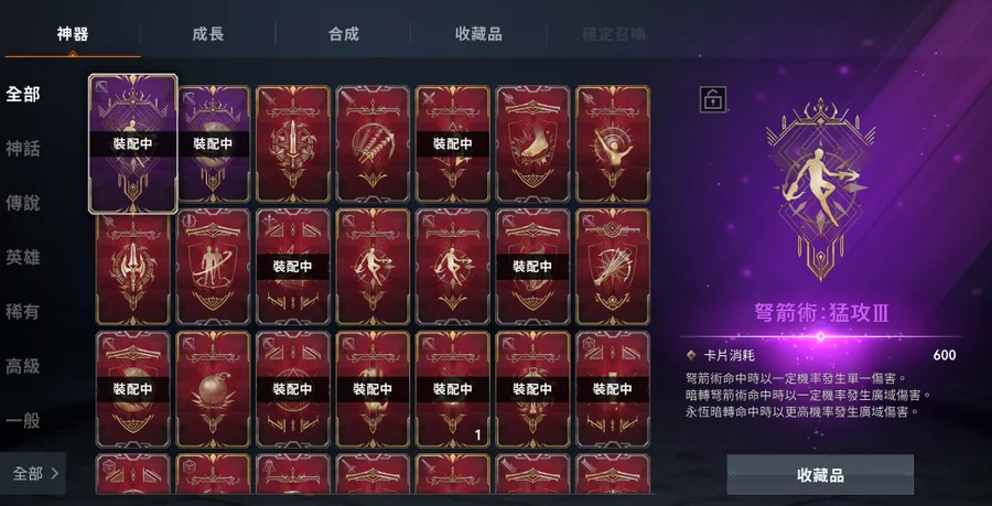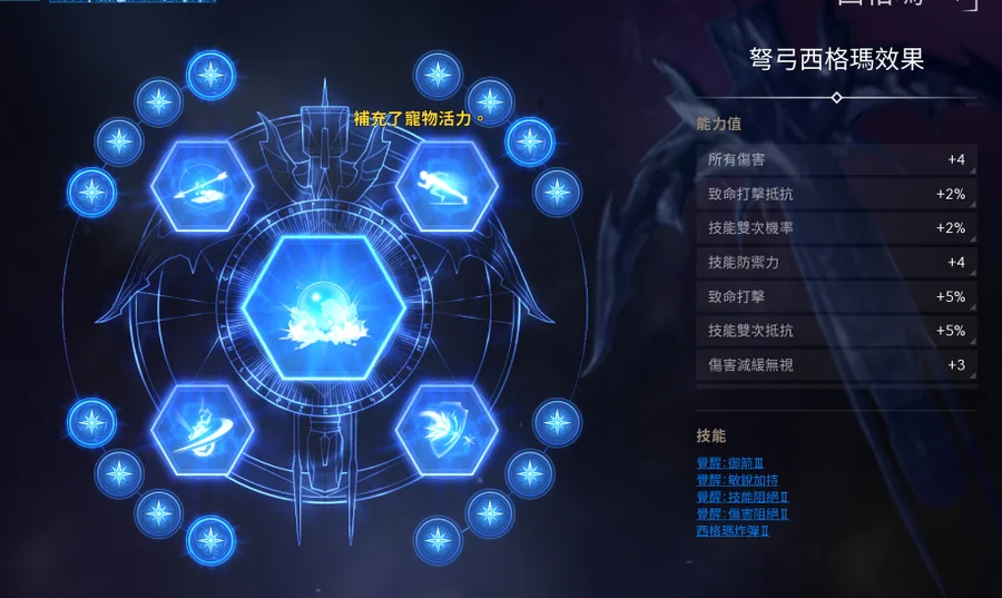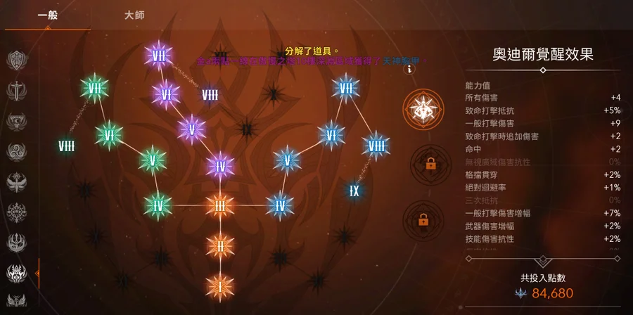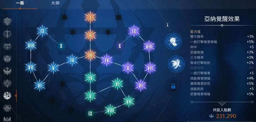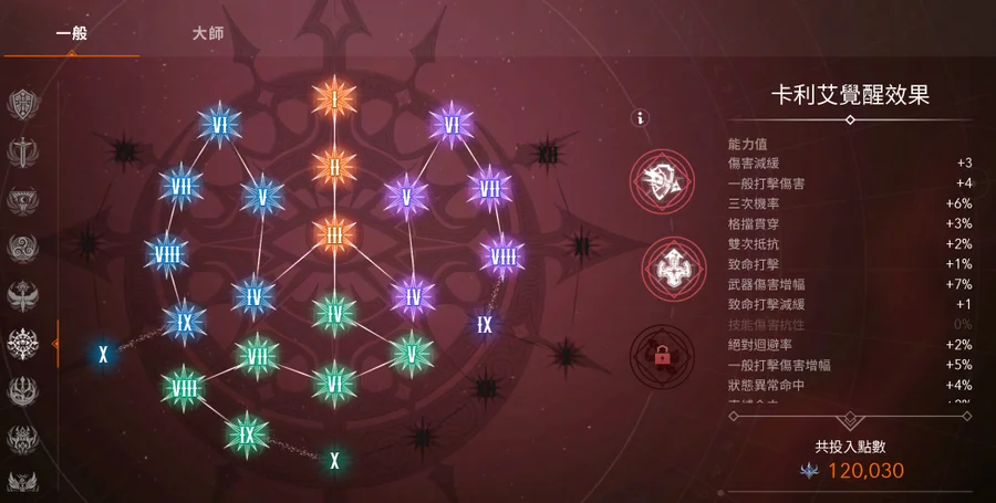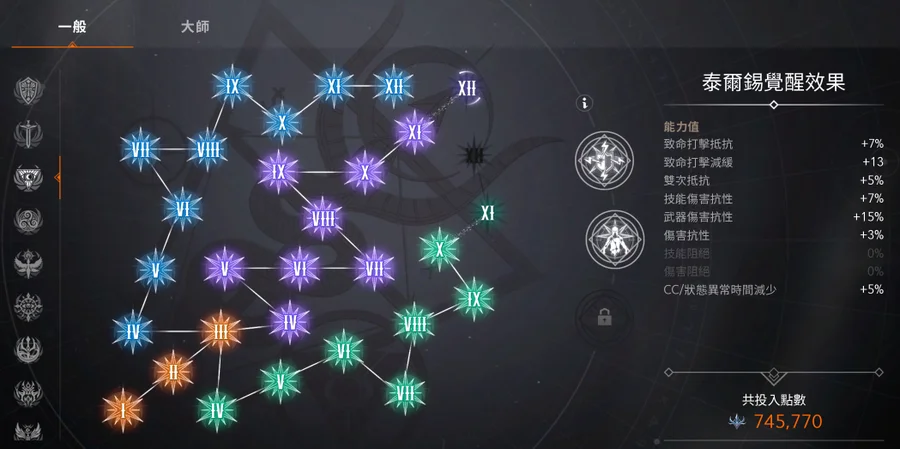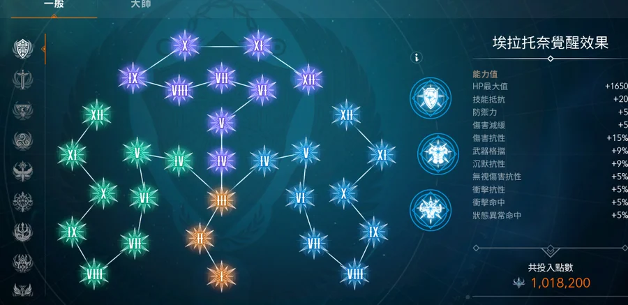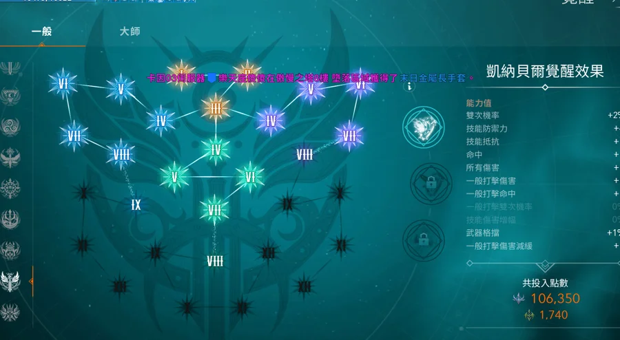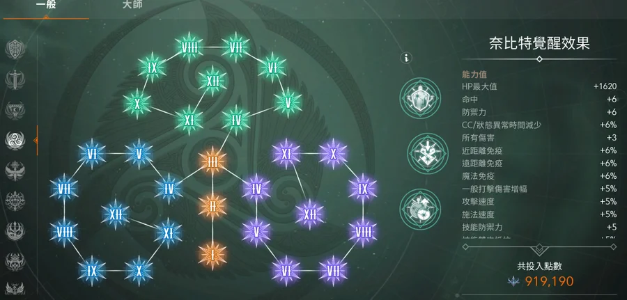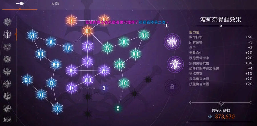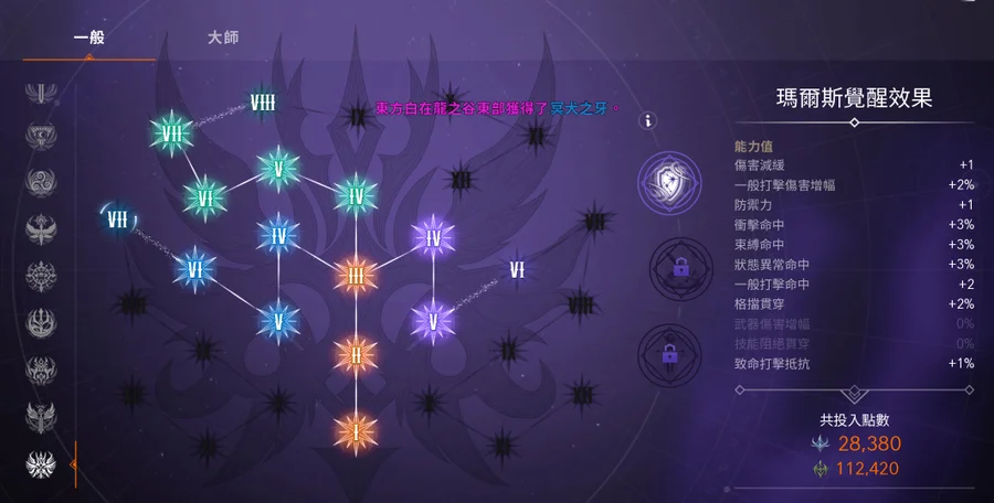 紫色共通技能:極速誦咒、精神勝利、衝擊抵抗II、精準命中、帝國精通I、昇華防護、免疫