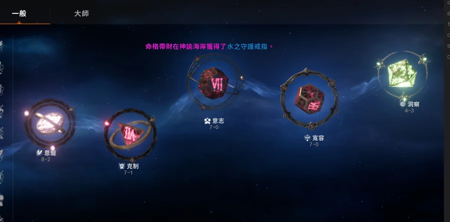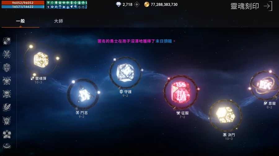 ★一般靈魂刻印:鬥志9-2、守護9-2、征服7-2、恩寵8-2、克制7-1、意志7、寬容7、洞察4-3,其餘2銀河