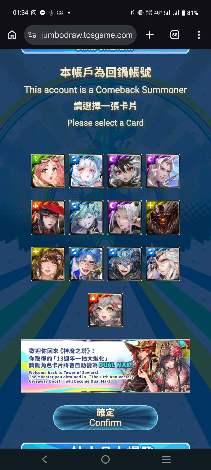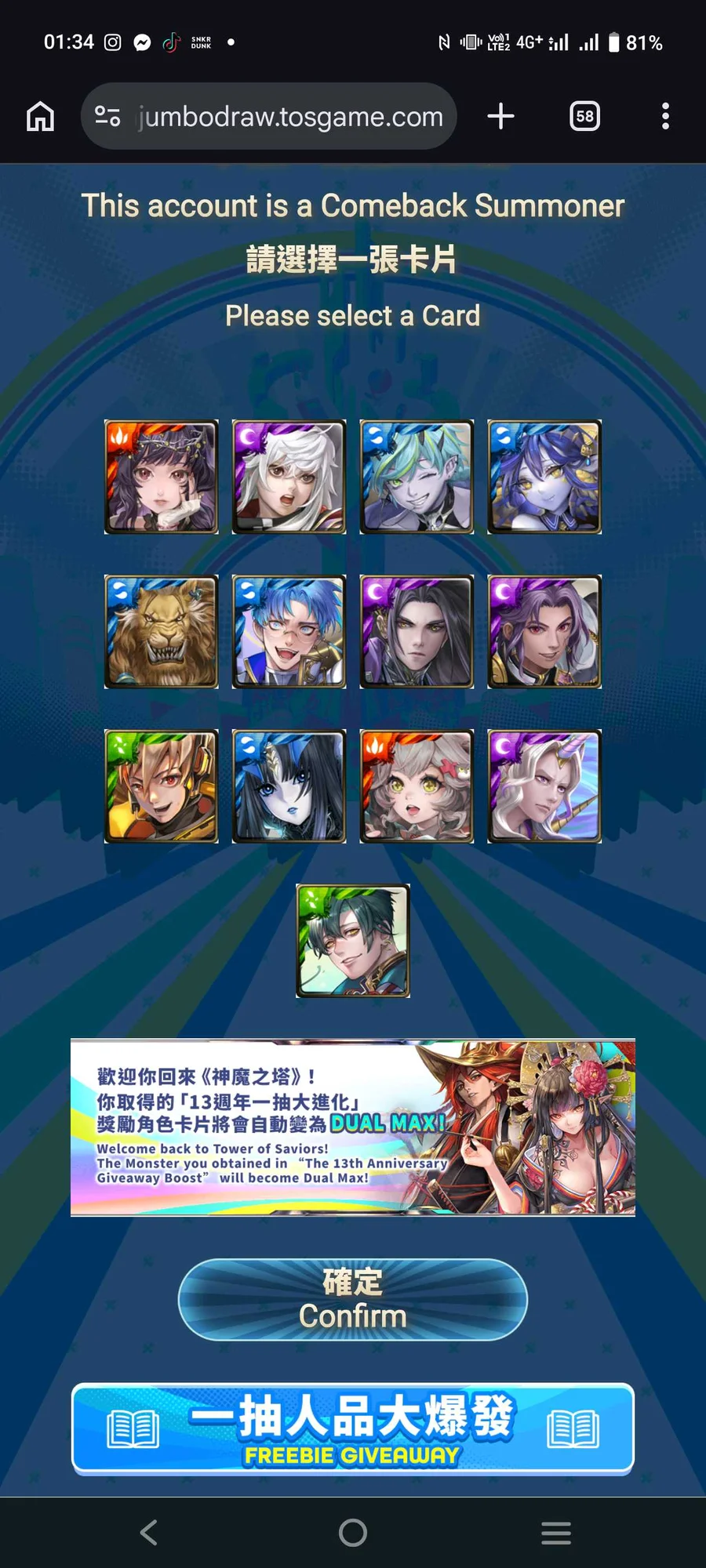 2/17一抽大進化一抽入魂 新增帝鴻 福爾 莉莉絲