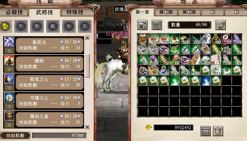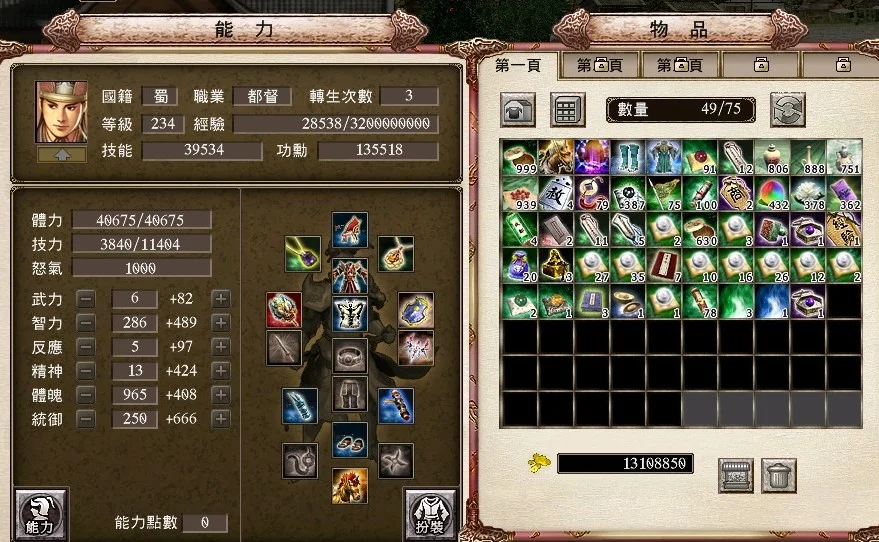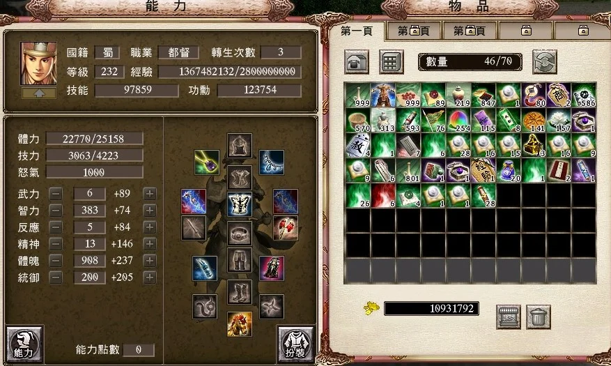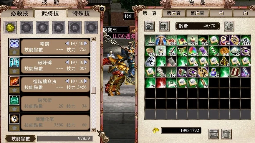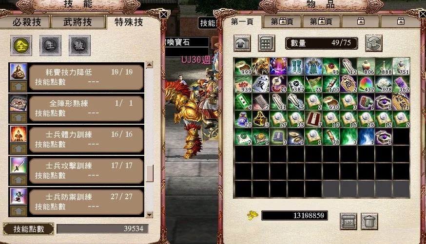 238猛 飛將 240套裝強3 次數 1/2 八門2層覺5 全效化工3顆 易名印鑑改名1顆