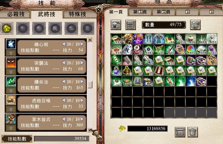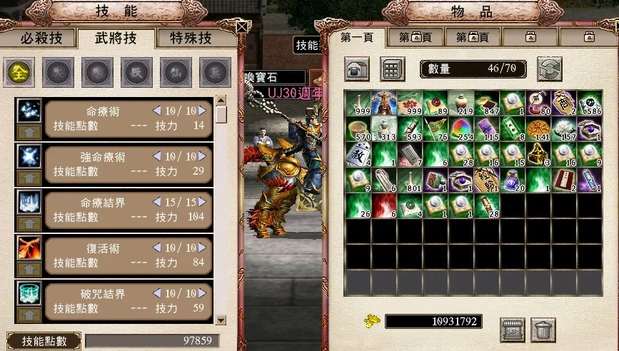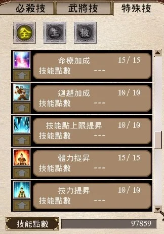 技能 破陣杯 電光火石 (進階續命) 虎砲 突擊法 續命法 維心 命結15 結界 軍魂