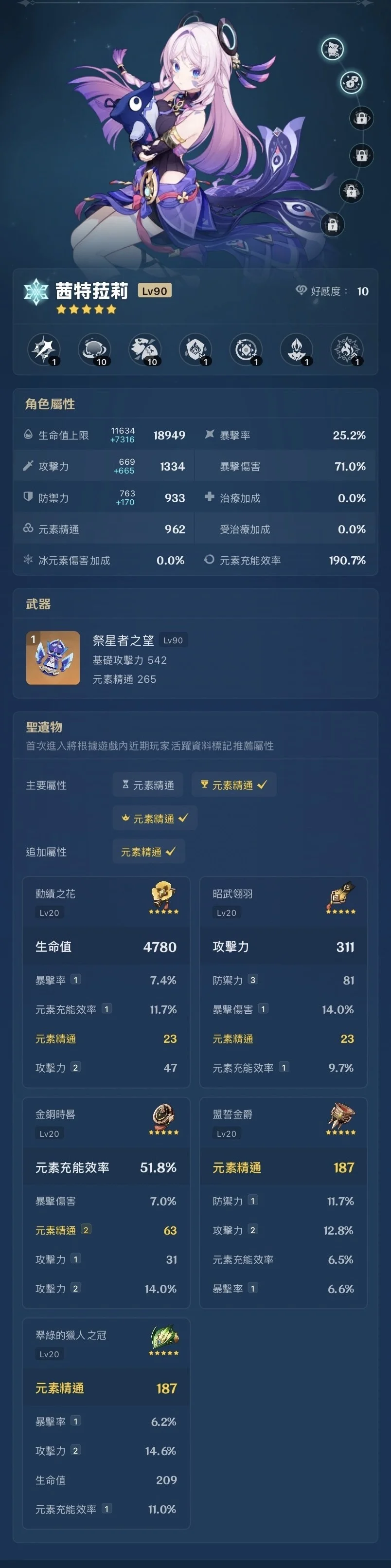 練度和聖遺物都很不錯,基本上深淵都能打滿。