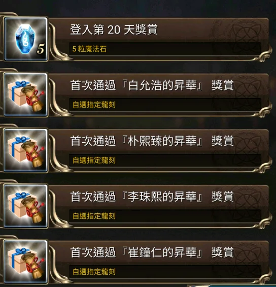 括號裡藍色的是獎賞裡的,到時候請自行領取。