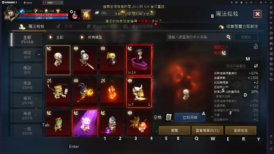 簡介:(持續掛機中)本尊職業:魔劍士 88等42%,6紅技,名譽幣204萬,其餘請看圖1支分身:魔劍士 82級,2紅技:超級聲波,方陣(王牌)*背包倉庫皆有擴充*綁進階樂豆,需自備信箱&手機轉移