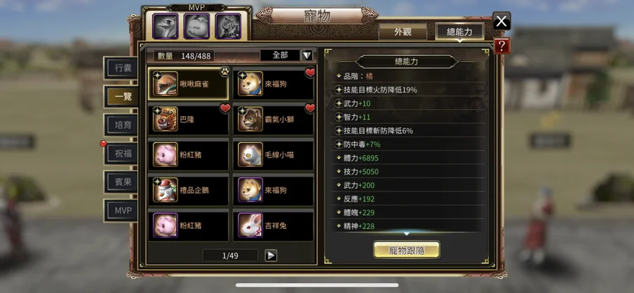 寵物:有3橘洗過分別是 火19%.妖19%.仙19%
