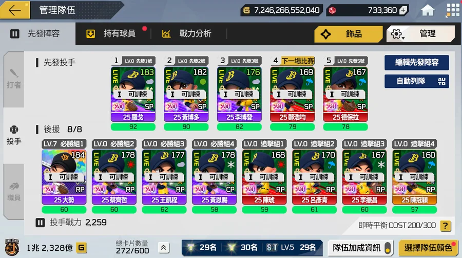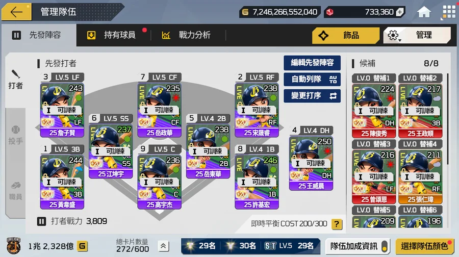 有喜歡的隊伍可以隨時開組隨便都是球團4-5京走起