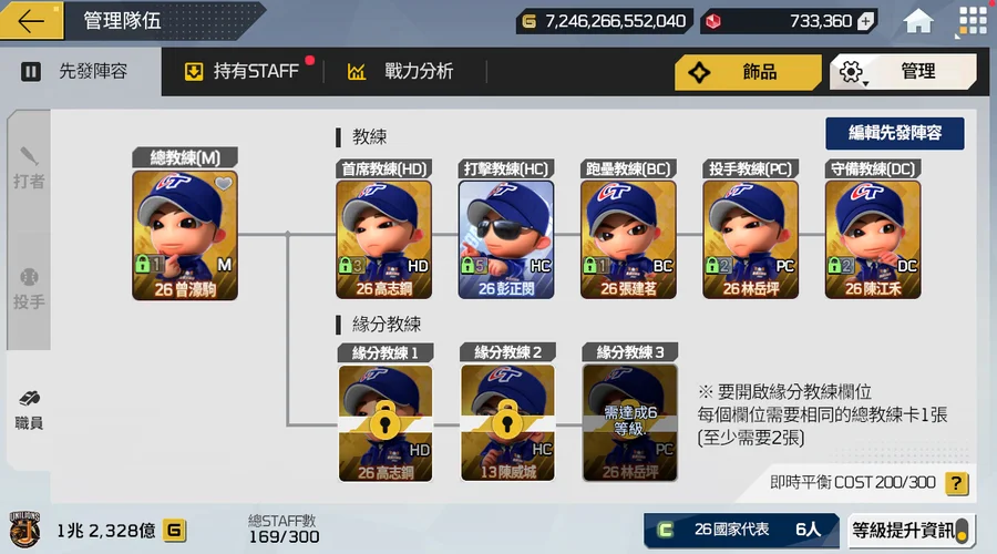 帳號內超多資源等你自由開發培養組喜歡球隊