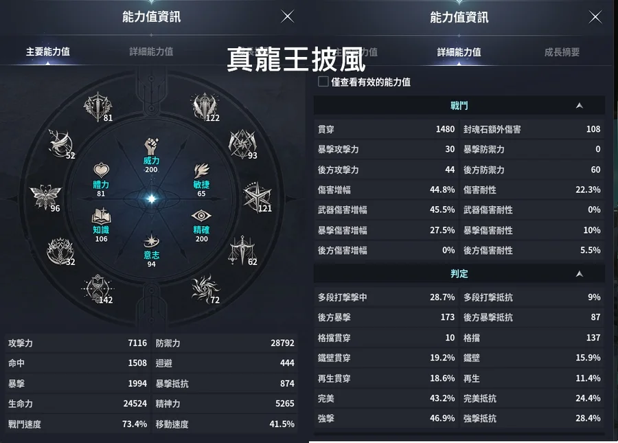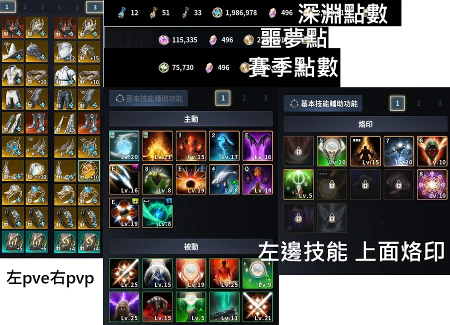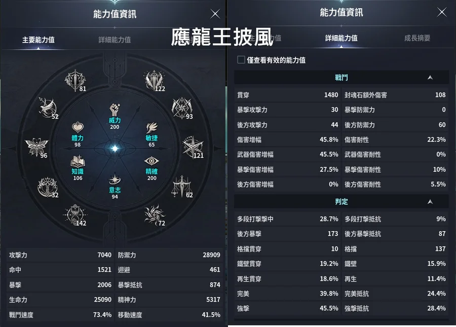 如圖因為應龍王披風還沒洗到 所以還是先穿真龍王打PVE比較強一點打架可以換成應龍+吉凱爾大雕像 防禦會到2.9萬翅膀幾乎都有 賽季大翅膀跟小遊戲的金翅膀也都拿到噩夢點 深淵點也都夠多 想換甚麼都可以自己換