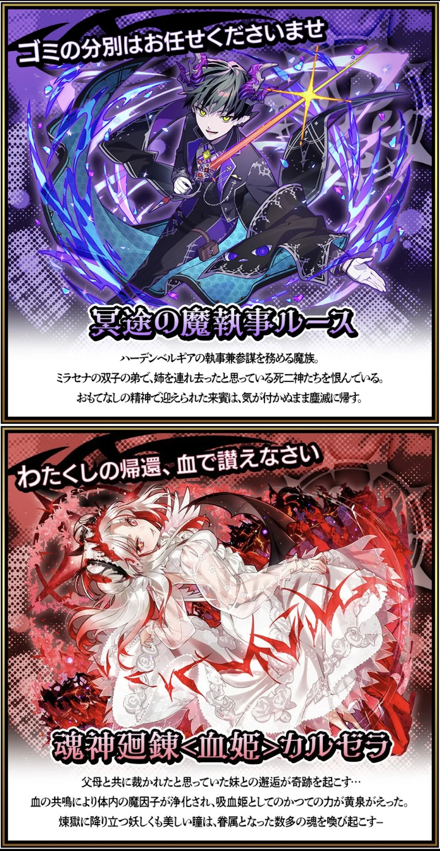 12週年限定、11.5週年限定、11週年限定、10.5週年限定、10週年限定、水魔巧姬、木魔巧姬、煤塵聖女、輪迴始翼、神聖天魔、魔神、魔帝、光魂神、黑獅魂神、LoveLive、史萊姆、迷宮飯、Re0、EVA、骨王、盾勇、炎炎消防隊、劍神機、睡魔女、美食系列多石初始