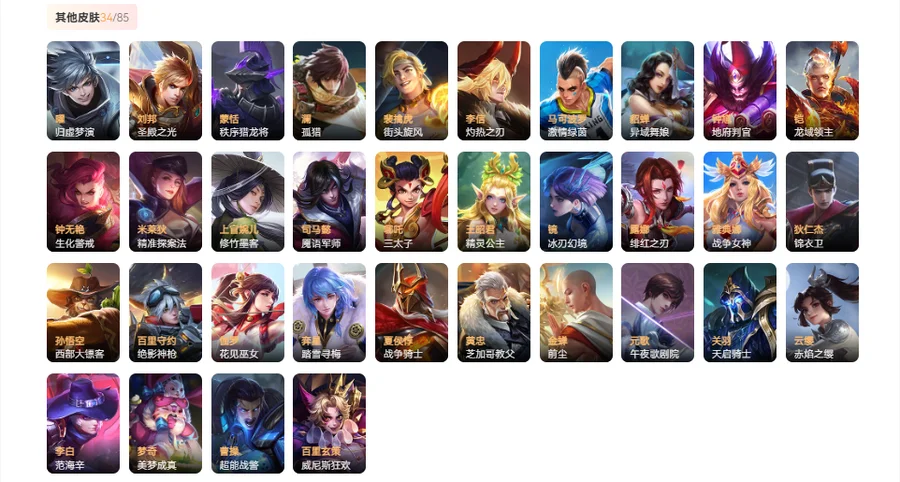 【其他81】 老夫子功夫老勺 金蝉前尘 戈娅玫蓝誓约 姜子牙星梦巡礼 东皇太一金福满堂 白起白色死神 米莱狄精准探案法 露娜哥特玫瑰 程咬金无双福将 刘禅秘密基地 安琪拉玩偶对对碰 大司命暗都幽影 程咬金群星魔术团 李白敏锐之力 弈星踏雪寻梅 盘古经纬探寻者 刘邦圣殿之光 钟无艳春野之旅 狄仁杰锦衣卫 廉颇功夫炙烤 王昭君精灵公主 典韦黄金武士 貂蝉异域舞娘 孙膑归虚梦演 姜子牙炽热元素使 猪八戒潮玩探月行 夏侯惇战争骑士 牛魔制霸全明星 妲己紫罗兰之誓 典韦铁甲之心 黄忠芝加哥教父 大乔守护之力 宫本武藏霸王丸 蒙恬秩序猎龙将 鲁班大师乓乓大师 云缨赤焰之缨 宫本武藏未来纪元 杨戬次元傲视 韩信街头霸王 狂铁命运角斗场 刘备汉昭烈帝 澜孤猎 露娜绯红之刃 项羽科学大爆炸 关羽龙腾万里 梦奇美梦成真 关羽天启骑士 百里玄策威尼斯狂欢 元歌午夜歌剧院 廉颇无尽征程 伽罗花见巫女 雅典娜战争女神 百里守约绝影神枪 裴擒虎街头旋风 马可波罗激情绿茵 赵云忍炎影 哪吒次元突破 司马懿魇语军师 花木兰兔女郎 镜冰刃幻境 哪吒三太子 达摩大发明家 曜归虚梦演 李信灼热之刃 曹操超能战警 上官婉儿修竹墨客 铠龙域领主 李白范海辛 达摩拳王 钟无艳海滩丽影 孙悟空西部大镖客 韩信教廷特使 钟馗地府判官 扁鹊化身博士 李元芳黑猫爱糖果 阿轲致命风华 刘备纽约教父 钟无艳生化警戒 亚瑟死亡骑士 妲己少女阿狸 宫本武藏万象初新