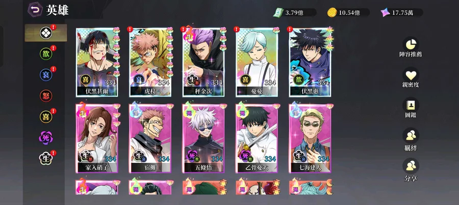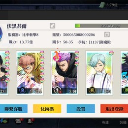 【335等】[比率斬擊8]14.64億 榜一 V10 五花甚爾 虎杖,三花秤金次,沒時間玩