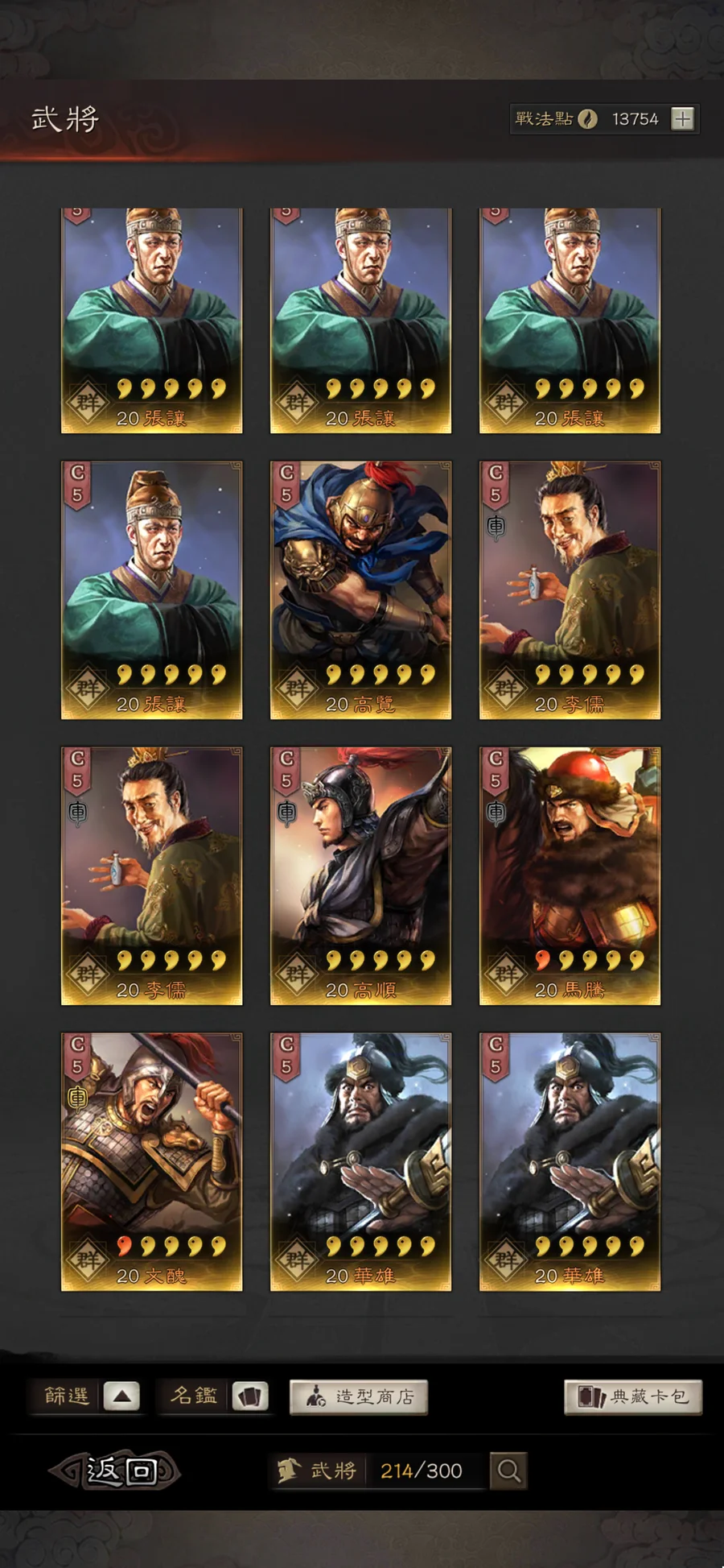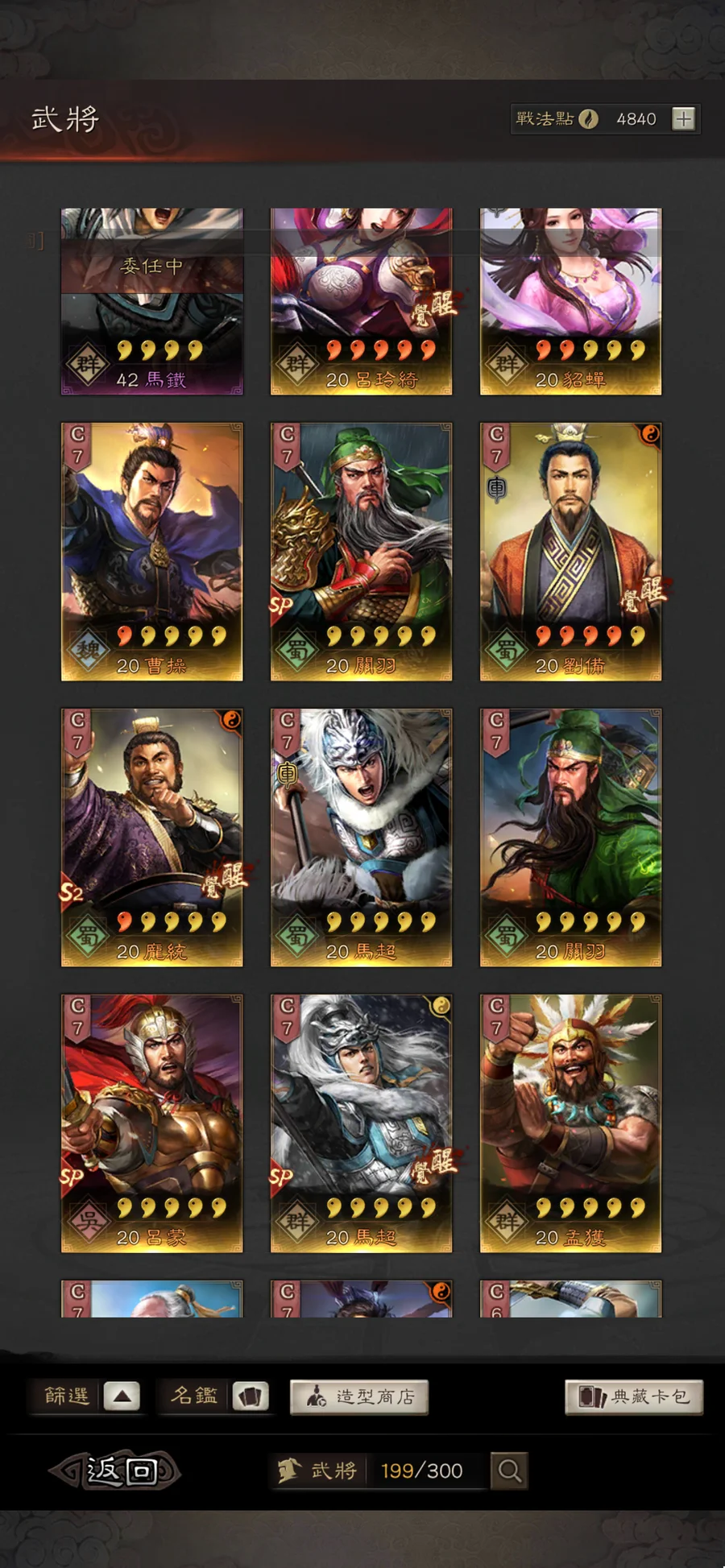 香港帳號,有三皇(劉備4紅,曹操1紅,孫權1紅)