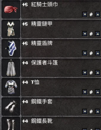 內容物包含+6精靈鏈甲+6精靈盾+6紅頭+4鋼靴+4鋼手+4內衣+4保斗
