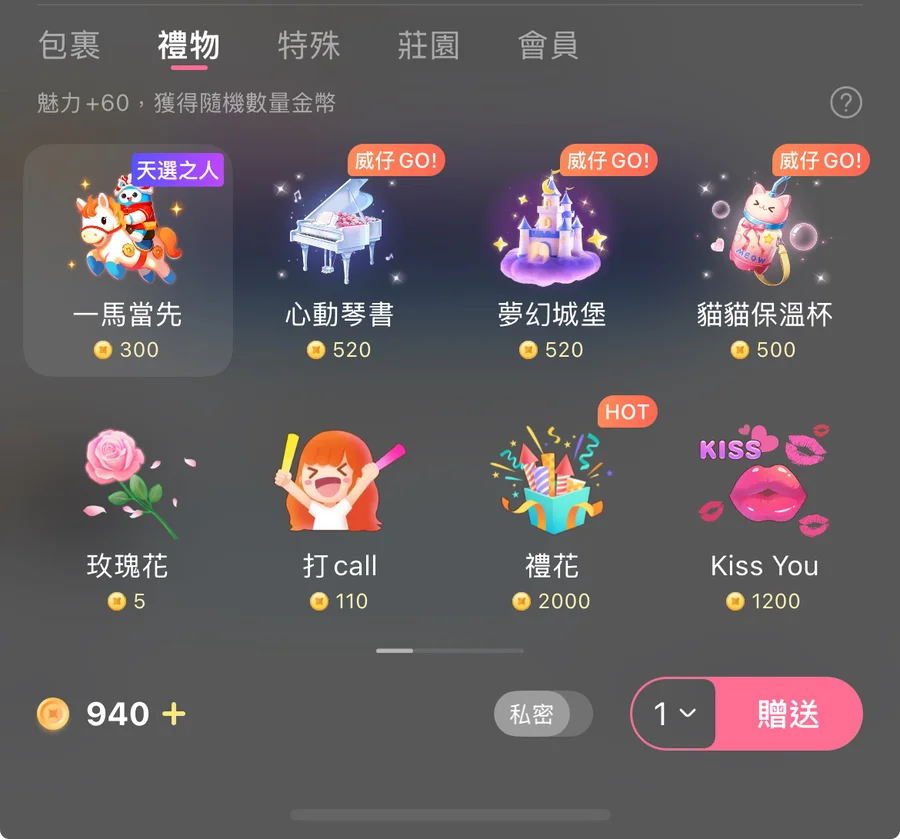 300金幣的天選之人*3或其他禮物