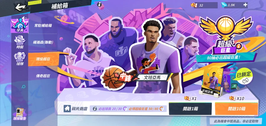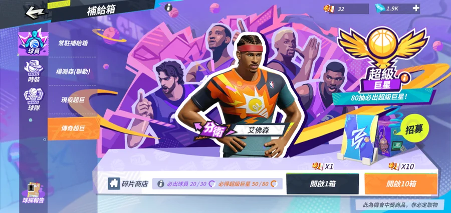 強3恩比德滿天賦+巨星可以80抽保底,多服裝。1900鑽石