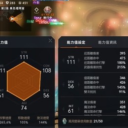 傷害:395 命中:475 衝命:177 衝抗:150 技傷:379 能力取最大值