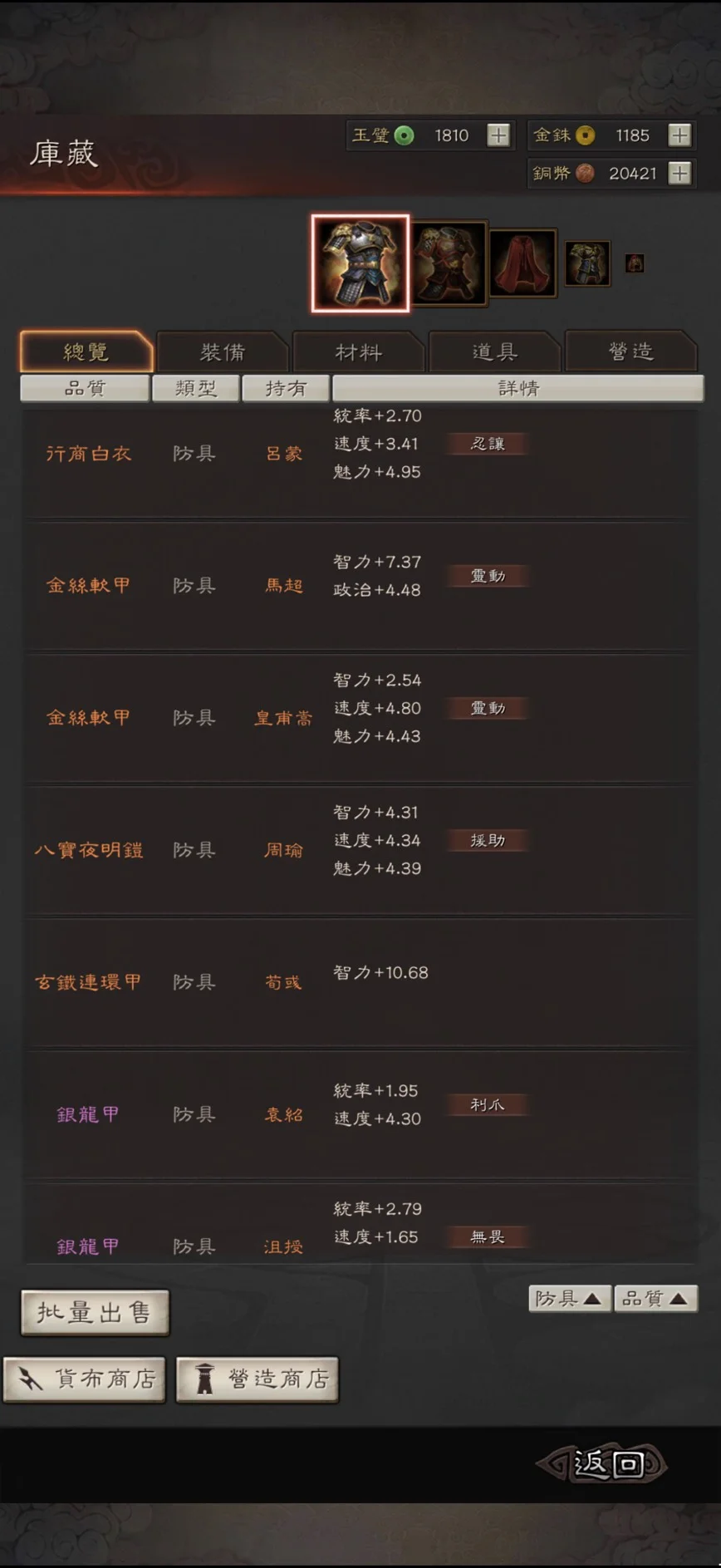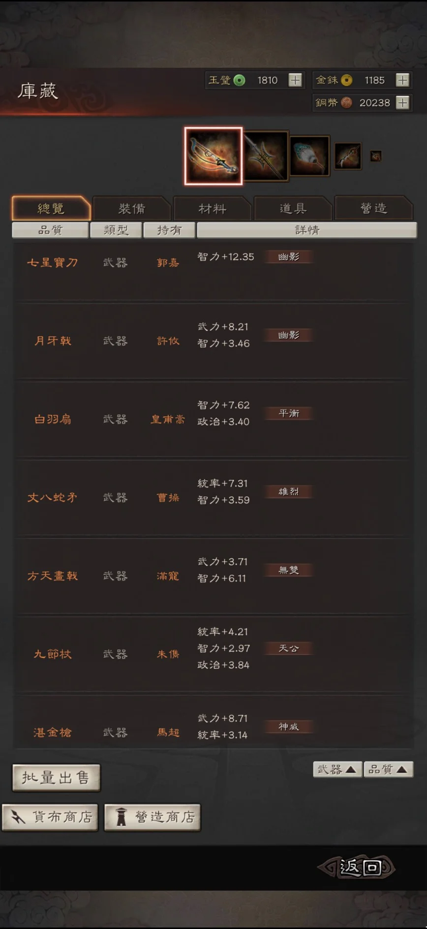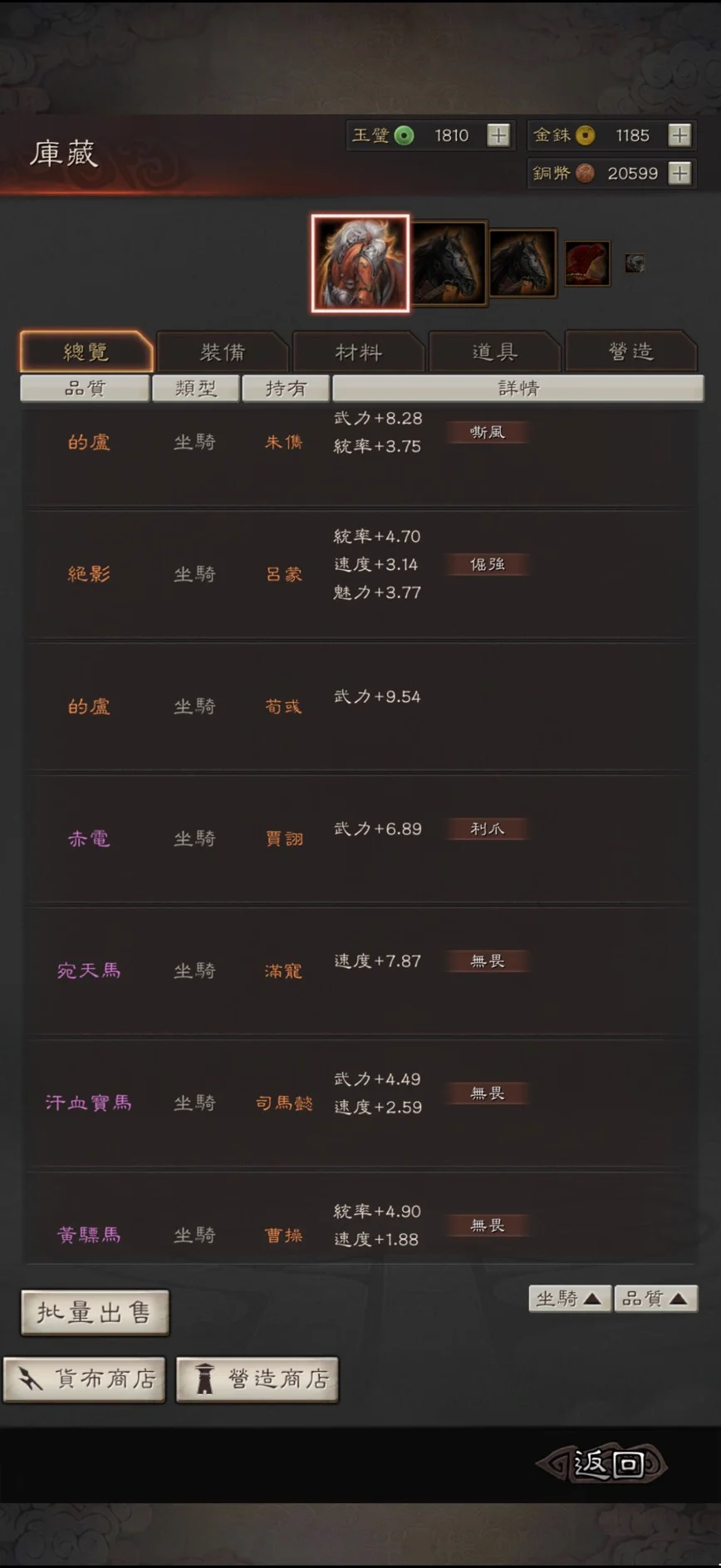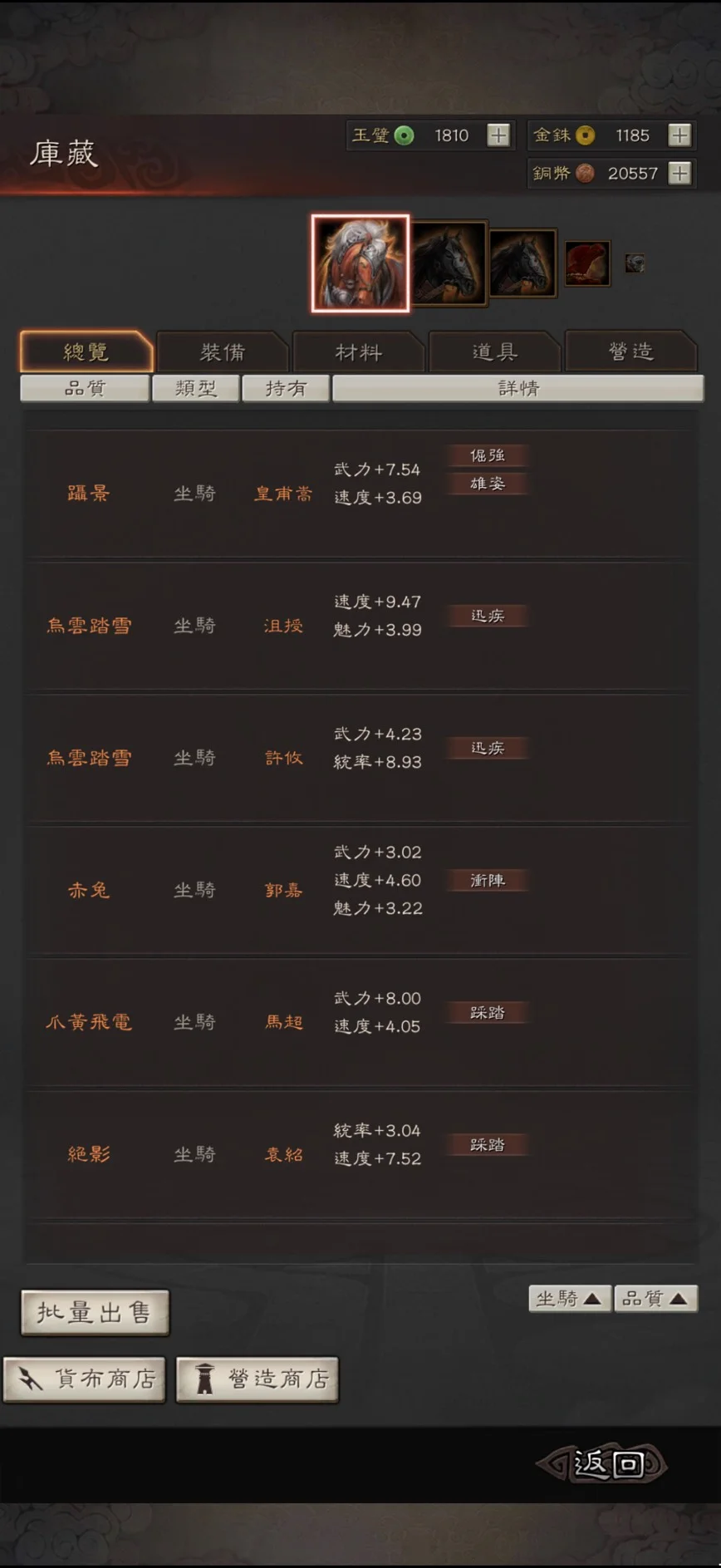 馬超湛金槍有三把,神威、妖氣、白的,之後看是要上速度還是力量的再用將威變成雙特技。